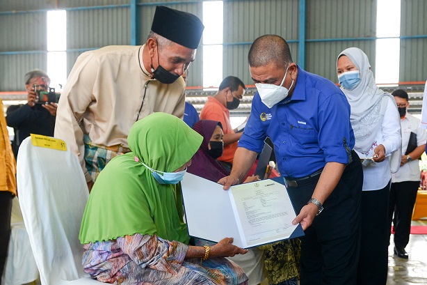 Dalam majlis tersebut, beliau telah menyampaikan geran hak milik tanah peneroka kepada warga Felda Bersia kepada 51 orang penerima.