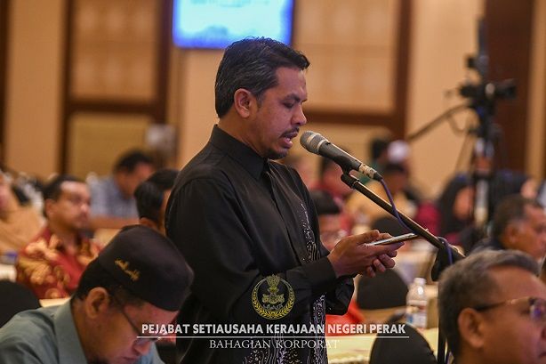 Sesi dialog kemudiannya dipengerusikan oleh YAB Dato’ Seri Saarani bin Mohamad, Menteri Besar Perak, bersama YB Dato’ Mohd Zaki bin Mahyudin, Pegawai Kewangan Negeri Perak, dan YBrs. Puan Halizah binti Sipun, Timbalan Setiausaha Kerajaan Negeri (Pembangunan), bagi mendengar soalan serta isu yang dibangkitkan oleh para jemputan.