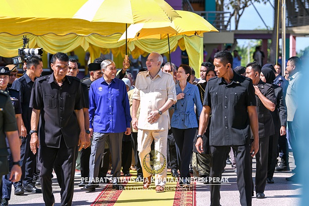His Royal Highness’ arrival was welcomed by Deputy Prime Minister Dato' Seri Diraja Dr. Ahmad Zahid Hamidi, Perak Menteri Besar Dato' Seri Saarani Mohamad and his wife Datin Seri Aezer Zubin.